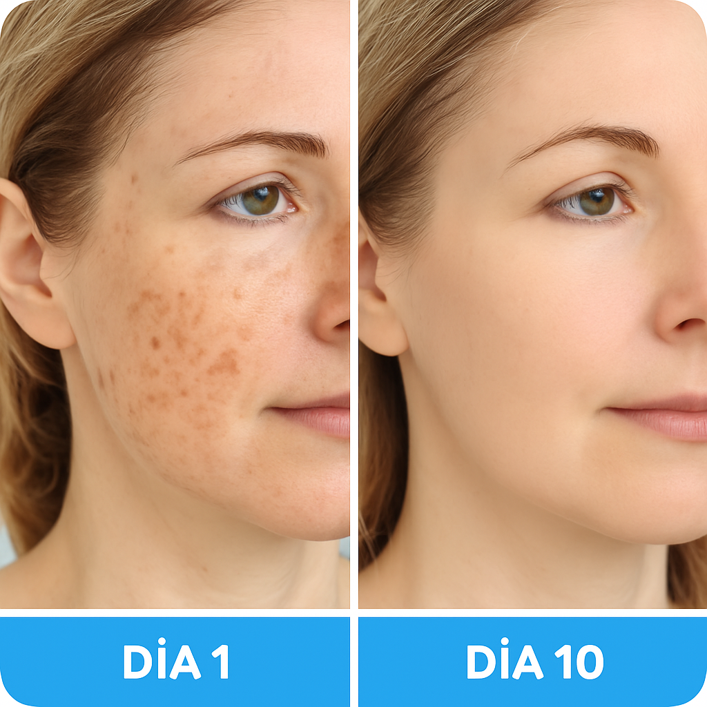 Muchos usuarios notan los primeros cambios en textura y luminosidad en los primeros 5 a 7 días. Sin embargo, los resultados más visibles aparecen tras 2 semanas de uso constante, especialmente en manchas, granitos y líneas finas.