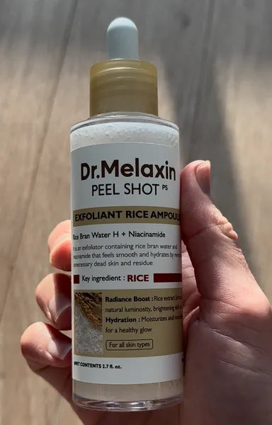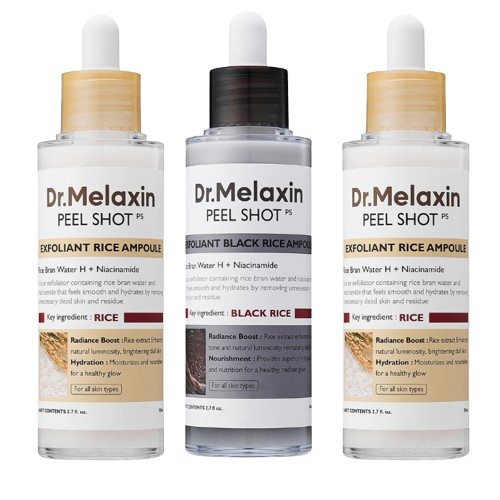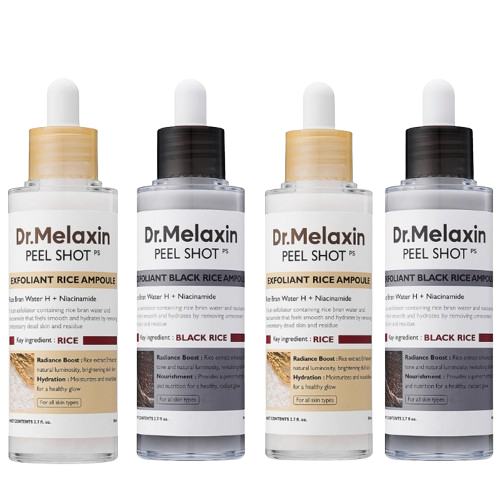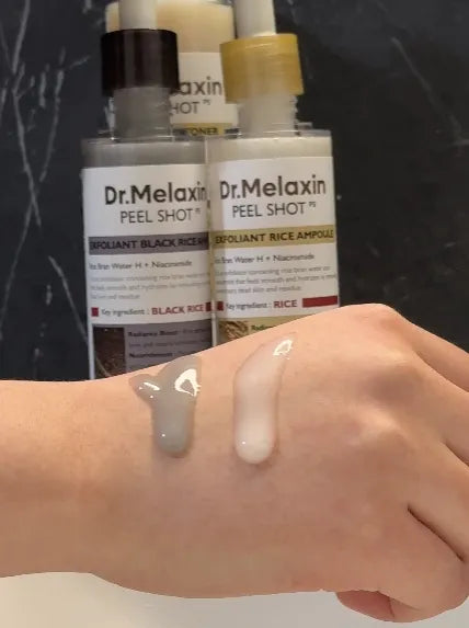Dr. Melaxin™ no solo exfolia: hidrata, suaviza y mejora la elasticidad con su fórmula de arroz negro y niacinamida. Es una solución 3 en 1 sin irritar ni dañar la barrera cutánea.
